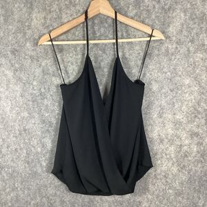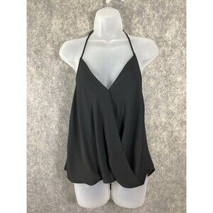 Aqua Black Halter V Neck Tank Blouse Size XS Slip On Camisole