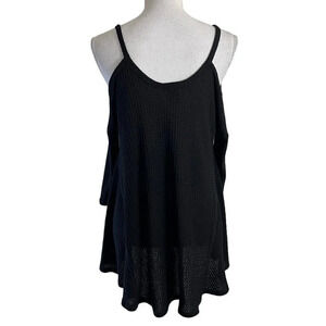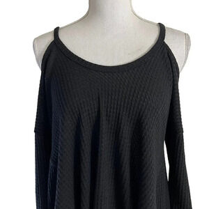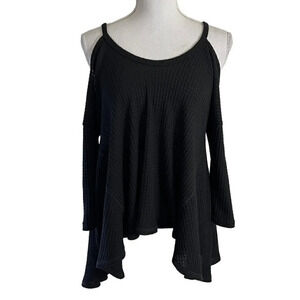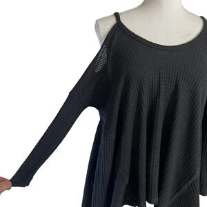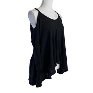 Aqua Black Knit Cold Shoulder Top Size XS Flowy High Low Pullover Relaxed Fit