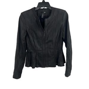 Aqua Black Leather Jacket Peplum Waist Size Medium