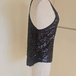 Aqua Black Matte Sequin Mesh Lined Racerback Hi-Lo Tank, Pre-owned, XS