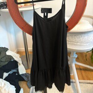 One of my all time favorites, this black mini dress is the perfect go-to for any occasion. It's loose fitting but still sexy in length and has adjustable straps to make it the perfect fit. There's also the cutest lace detail at the bottom. Can be worn from a date night to the pool and everywhere in between. Amazing condition.