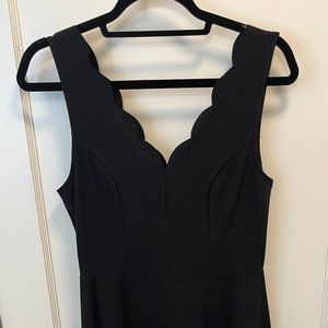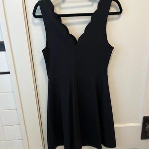 Aqua // Black Mini Dress with Scalloped V-neck