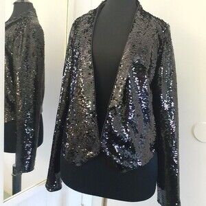 Stunning black sequins jacket , great for evening attire , parties , NYE, and special occasions!