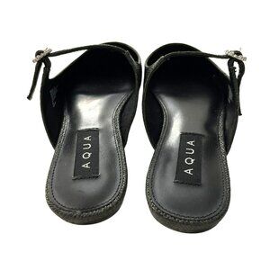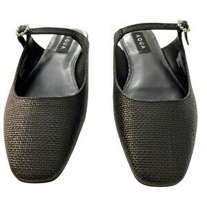 Aqua Black Square-Toe Woven Flats Rhinestone Buckle Strap Size 7.5 NEW