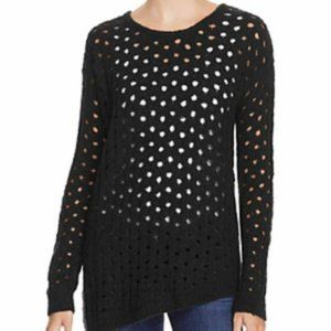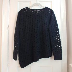 Aqua Black Sweater with Holes Asymmetrical Bottom Bloomingdale's wool blend S-M