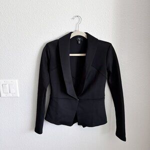 💼: women's work blazer, black office blazer, corporate layering piece, structured blazer XS, stretch blazer, professional wardrobe staple, career outfit must-have, fall workwear jacket, sleek business casual look, tailored office jacket, interview outfit essential, minimalist fall blazer