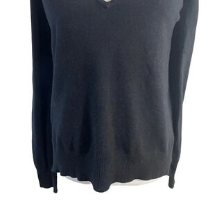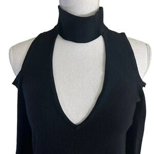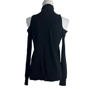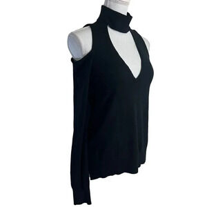 Aqua Black Top Size Small Cold Shoulder V Neck Long Sleeves Solid Pattern Blouse