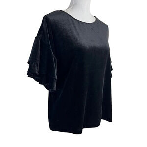 Aqua Black Velour Blouse Size Medium Flared Short Sleeves Formal Cocktail Top