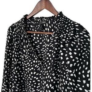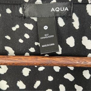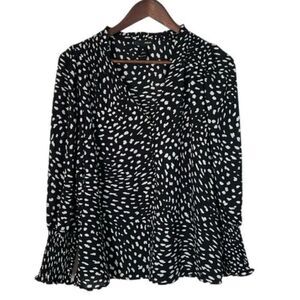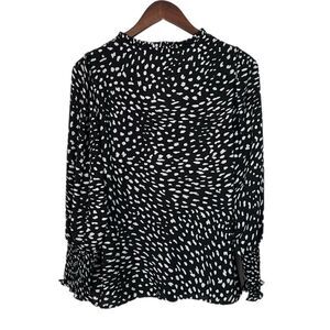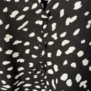 Aqua Black White Dot Shirred Elastic Sleeve Cuff V-Neck Ruffle Blouse. Very good pre-owned condition!