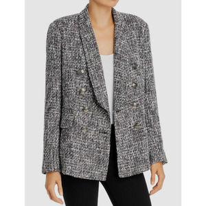 Aqua Black White Metallic Tweed Double Breasted Blazer Jacket