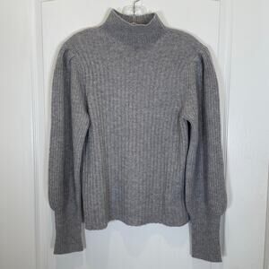 Aqua Bloomingdale's 100% Cashmere Sweater Gray Balloon Sleeve Mock Neck Tight L