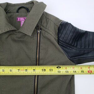 Aqua Bloomingdales Moto Jacket Size S Black Faux Leather Sleeves Army Green