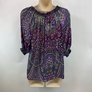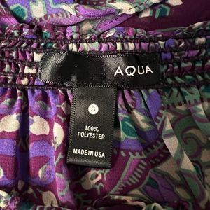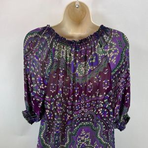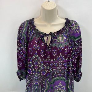 Aqua Bloomingdale's Womens Sz S Purple Sheer Floral Tie Neck Blouse