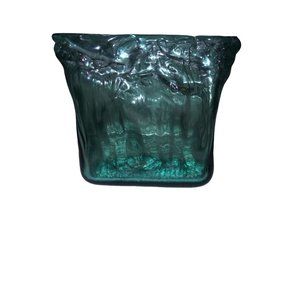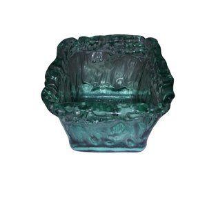 Pre-owned Aqua Blue 100 % Recycled Glass Square Textured Candle Planter, in good condition. Please view all photos for planters general pre-owned condition and measurements.