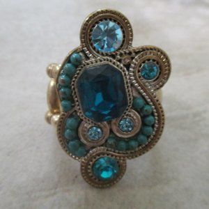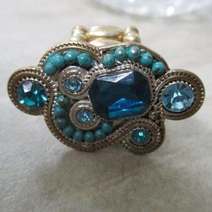 Aqua Blue Crystal Swirl Cocktail Ring Stretch Band