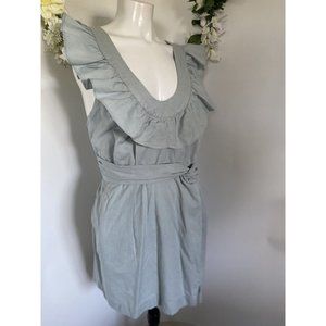 Aqua Blue Free People LLara Boho Ruffle Cross Back Mini Dress Sz S/M Pockets EUC