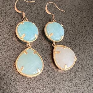 Aqua Blue Pink Quartz Double Stone Drop Earrings Luxury Jewelry