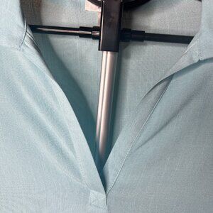 Aqua Blue Popover Tunic Top Split Neck Long Sleeve High Low Hem Rayon Size Small