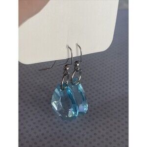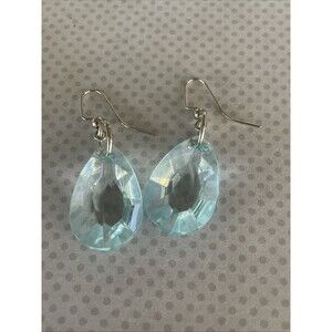 Aqua Blue Teardrop Crystal Dangle Earrings Hook Earrings Lightweight