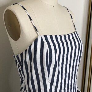Aqua Blue White Striped Faux Wrap Dress, Large