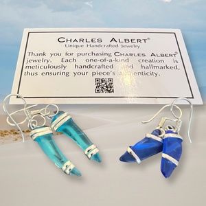 Earrings are new and in excellent condition. Beautiful blues and unique shape make these one-of-a-kind. Handcrafted with Silver Plated Base in Mexico, base metals are a mixture of copper & tin. Please Note: Earrings are being sold separately. Price is per pair, please specify which color(s) you want upon your purchase!