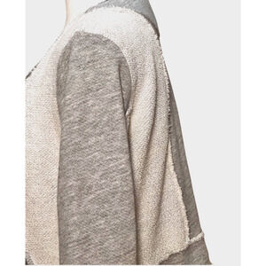 * Contrasting sweatshirt-style colorblocked panels of light and medium gray
