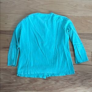 Stylish aqua cardigan with button-up front. Perfect for layering.