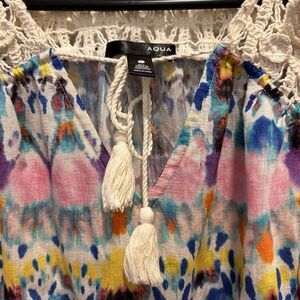 Aqua By Bloomingdale's Lace Crochet Mini Dress Womens Large Fit And Flare
