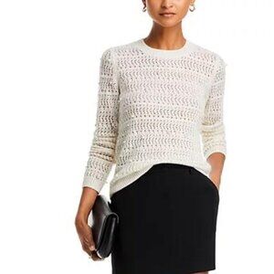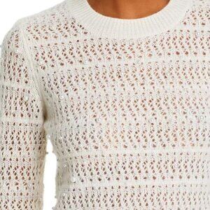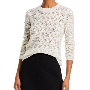 Aqua Cashmere sweater, Pearl embellished sweater, Open knit crewneck, Ivory cashmere pullover, Faux pearl knit sweater, Designer cashmere sweater, Luxury knitwear women’s XXL, NWT cashmere sweater XXL, 100% cashmere women’s top, Cozy fall winter sweater, Elegant holiday sweater, Crewneck embellished top, Aqua brand boutique sweater
