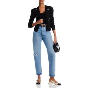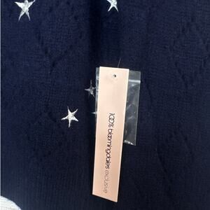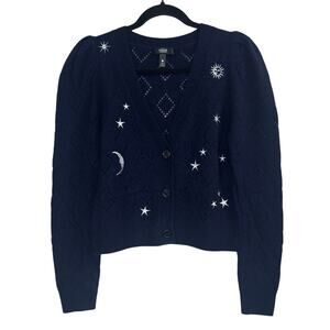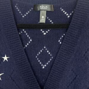 NWT Aqua Cashmere Celestial Embroidered Diamond Pointelle Puff Sleeve Cashmere Navy Cardigan Bloomingdale’s Exclusive Women's Size Small