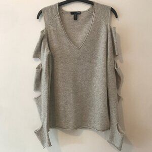 Aqua Cashmere Gray V-neck Cutout Sleeves Sweater S