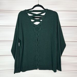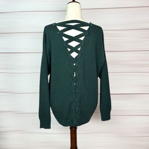 Aqua Cashmere Lace-up Back Cashmere Sweater V-neck Dark Green Relaxed Fit L