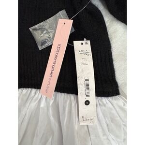 Aqua Cashmere Peplum Cardigan Sweater Button-Down Top Black White S
