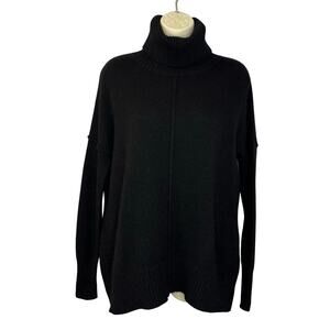 Aqua Cashmere Turtle Neck Sweater Tunic Black Relax Fit Soft Luxury