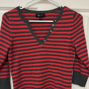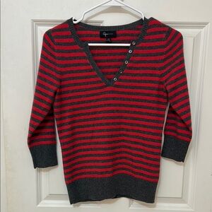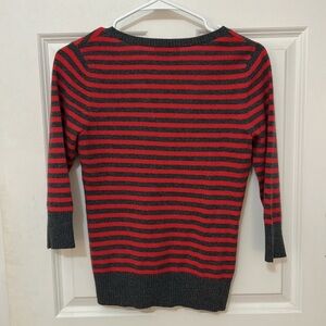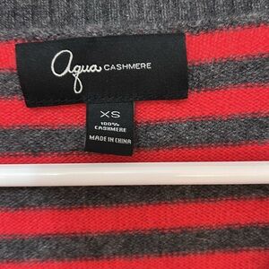 Aqua Cashmere V-Neck Sweater with 3/4 Sleeves size XS red gray striped