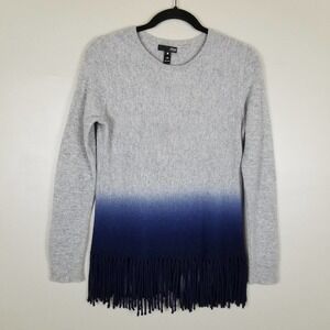 Aqua Cashmere, ombre fringe 100% cashmere sweater, size xs, gray and blue