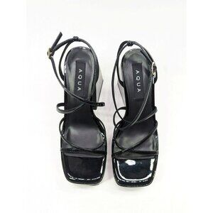 Aqua Chance Strappy Open Toe Platform Block Heels Black Size 8 (MSRP $118)