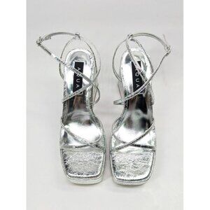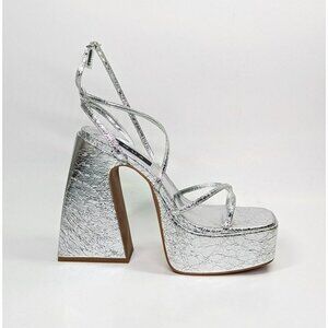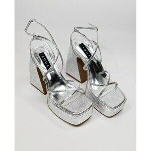 Aqua Chance Strappy Open Toe Platform Block Heels Silver Size 8 (MSRP $118)