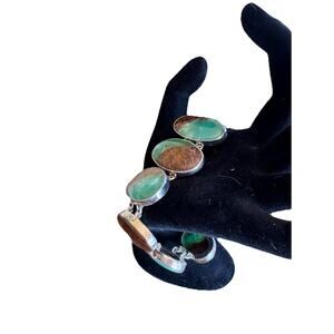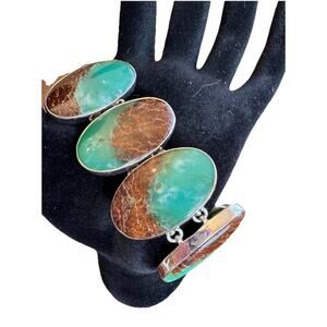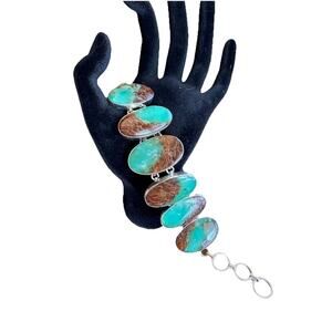 Aqua Chrysoprase Sterling Silver Bezel Set Bracelet 8.5” 7 Oval Graduated Stone