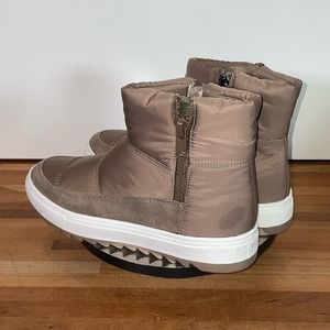 Aqua College pairs quilting and exposed zippers with waterproof adaptability for an adventure-ready look with the Sage booties.