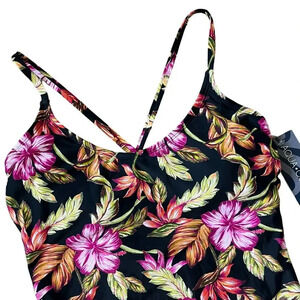 Aqua Couture Tropical Floral One Piece Swimsuit Size M NWT
