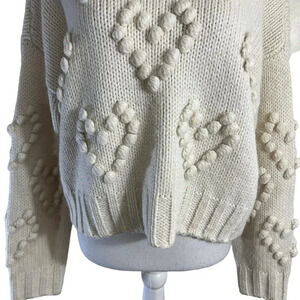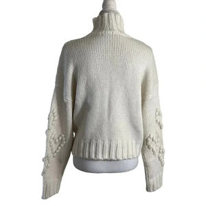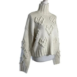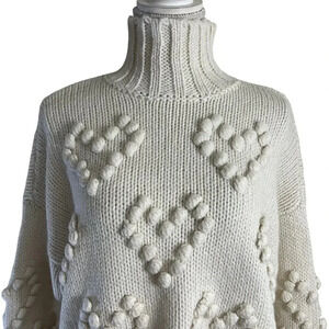 Aqua Cream Heart Pom Pom Sweater Size Small Turtleneck Long Sleeves Winter Top