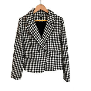 Aqua Cutaway Tweed Blazer Black Shite Houndstooth with a bit of Gold Women’s M