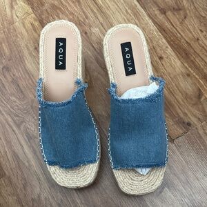 Chic denim espadrilles by Aqua. Perfect for casual wear. Comfortable and stylish.