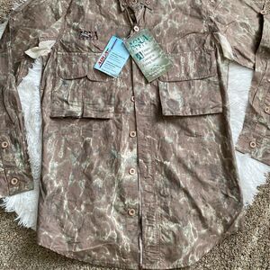 Aqua Design Button Front Fishing Shirt Weatherproof Water Resistant Mens Size XS