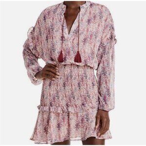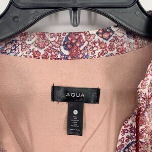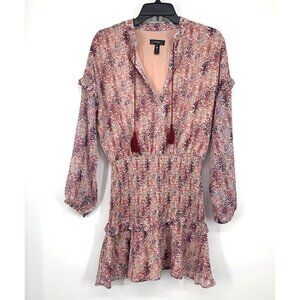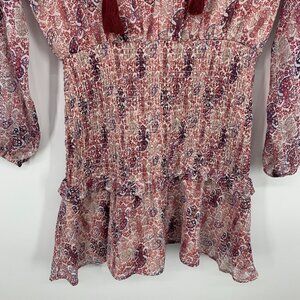 Aqua Dress Womens Size Small Smocked Mini Tassel V Neck Sheer Long Sleeve. Great pre-owned condition. Inside lining.