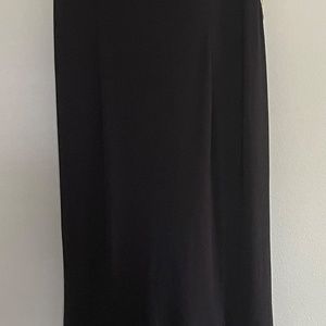 Beautiful Black evening gown with slight train. Sheer back with gold appliqué accent over back and v over train