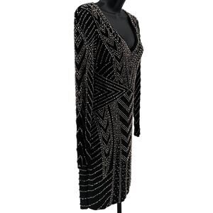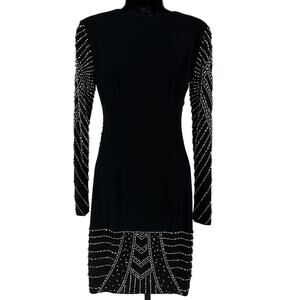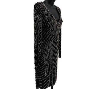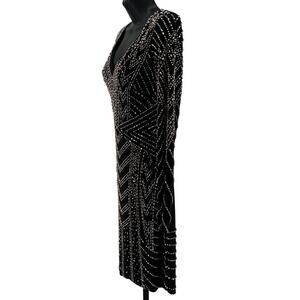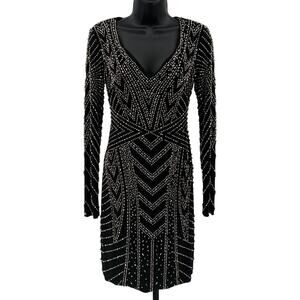 Aqua Dresses Bodycon Dress WMNS 0 Embellished V-Neck Black Stunning Long Sleeves