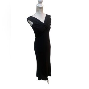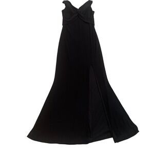 Aqua Dresses full length black lined gown low back twist front high side slit 6