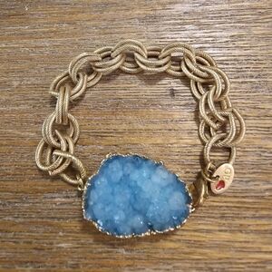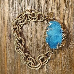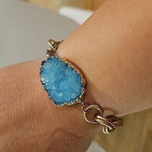 Aqua Druzy/Gold-Plated Focal Link Bracelet